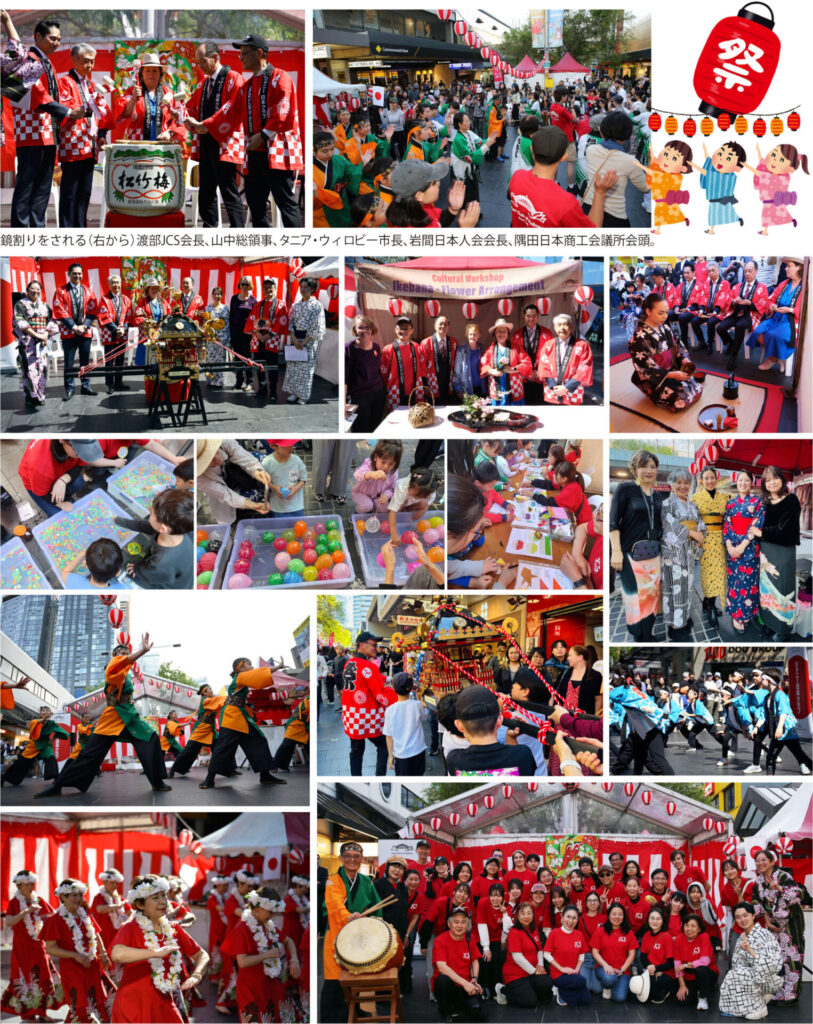 今年のChatswood日本祭りも、お天気に恵まれ、多くの方々に来場していただきました。祭りに参加された会員の皆さんを始め、出店された企業や出展、出演された皆さん、そしてイベント運営に携わってくださった多くのボランティアの方々、どうもありがとうございました!ご協力に深く感謝します。ボランティアと観客の子どもたちによる神輿担ぎも大いに盛り上がりました。小さな怪我が報告されただけで大きな事故もなく祭りを終えることができ、JCS役員一同ほっとしています。来年もまた素晴らしいお祭りができるよう、がんばります!